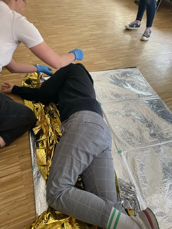 Unter professioneller Anleitung wurden dabei wichtige Grundlagen wie lebensrettende Sofortmaßnahmen, stabile Seitenlage, Herz-Lungen-Wiederbelebung (HLW) und der Umgang mit dem Defibrillator (AED) praxisnah vermittelt.